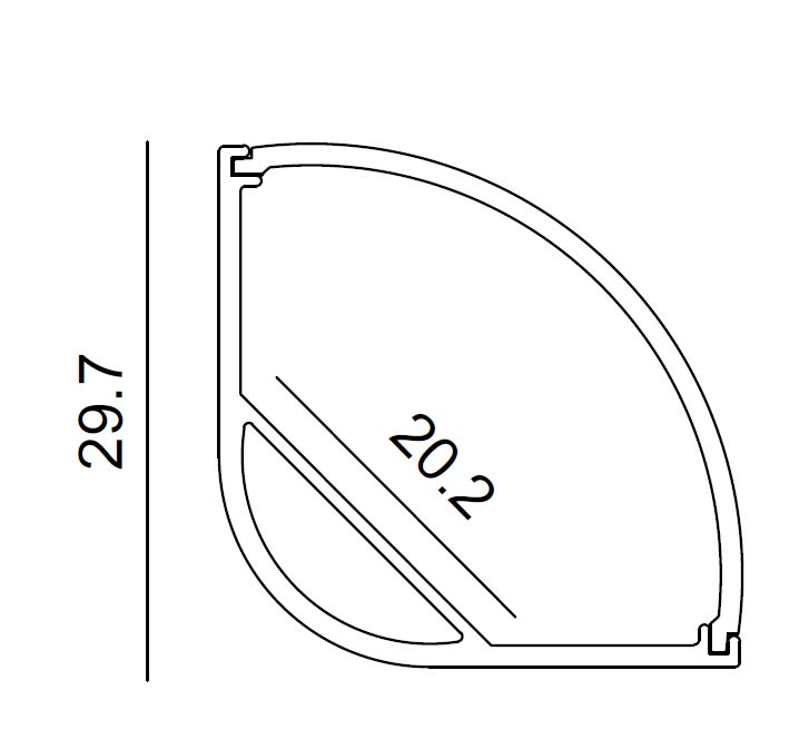 Profilo in alluminio angolare per striscia LED con diffusore trasparente di 2m. Emissione luce a 45°. Tappi inclusi. Forare il profilo per il fissaggio a parete.