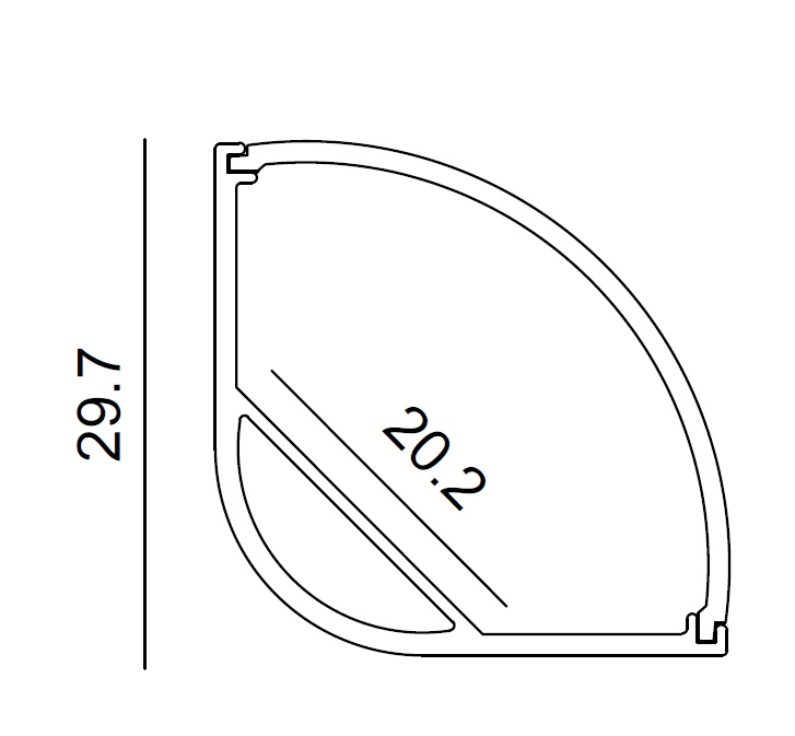 Profilo in alluminio angolare per striscia LED con diffusore opale di 2m. Emissione luce a 45°. Tappi inclusi. Forare il profilo per il fissaggio a parete.