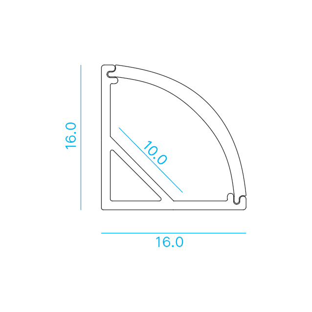 BARRA/STRIP/22/S - Profilo in alluminio angolare per striscia LED con diffusore opale di 2m. Emissione luce a 45°. Tappi (4 pz) e clip di fissaggio (4 pz) inclusi.