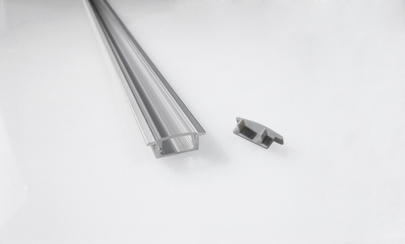 Profilo in alluminio da incasso con diffusore in policarbonato di 2m. Inclusi tappi.