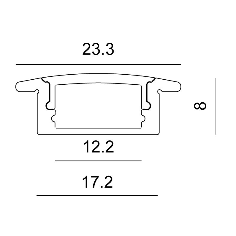 Profilo in alluminio da incasso per striscia LED con diffusore trasparentedi 2m. Tappi (4 pz) inclusi. Forare il profilo per il fissaggio.