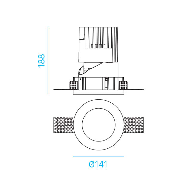 Incasso fisso tondo a LED per installazione a soffitto. LED COB CITIZEN (range potenza: 25W-38W). Life time 50.000h (rendimento 70%). Corpo in alluminio pressofuso. Cornice in alluminio verniciato bianco con staffe di fissaggio regolabili per soffitti dispessore diverso. Doppio sistema ottico con lente e riflettore migliora il comfort visivo. Disponibili accessori intercambiabili: cornice trimless per soffitti di spessore 12,5-25 mm; riflettore in policarbonato in cinque finiture diverse; griglia anti abbagliamento. Alimentatore 220-240V - 50/60Hz incluso. 40 W . 3600 lm.