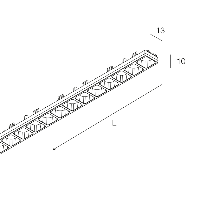 Profilo idoneo per strip LED, moduli micro ottiche e moduli binario, tagliabile in opera, per realizzare composizioni di luce incassate nel cartongesso. Corpo in cartongesso di spessore 12,5 mm da lastra standard o HYDRO (a ridotto assorbimento di acqua,utilizzabile in ambienti con umidit? relativa costante dell?aria ?70%). Profilo dissipante in lega di alluminio anodizzata naturale e schermo di protezione a filo in PMMA opale inclusi. Strip LED, moduli micro ottiche, moduli binario e alimentatore elettronico 24Vdc remoto da ordinare a parte. Non esporre a intemperie o luce solare diretta e non inserire in materiale isolante.