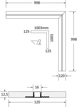 Profilo angolare 90? per Strip LED tagliabile in opera, per realizzare linee di luce incassate nel cartongesso. Corpo in cartongesso di spessore 12,5 mm da lastra standard. Profilo dissipante in lega di alluminio anodizzata naturale e schermo di protezione in PMMA opale inclusi. Strip LED e alimentatore elettronico 24Vdc remoto da ordinare a parte. Non esporre a intemperie o luce solare diretta e non inserire in materiale isolante.