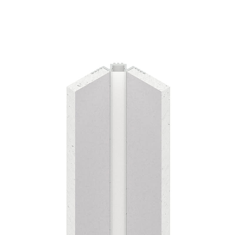 L-16 EDGE profilo lineare per spigolo interno non installabile direttamente su muratura per Strip LED tagliabile in opera, per realizzare linee di luce incassate nel cartongesso. Corpo in cartongesso di spessore 12,5 mm da lastra standard. Profilo dissipante in lega di alluminio anodizzata naturale e schermo di protezione in PMMA opale inclusi. Strip LED e alimentatore elettronico 24Vdc remoto da ordinare a parte. Non esporre a intemperie o luce solare diretta e non inserire in materiale isolante.