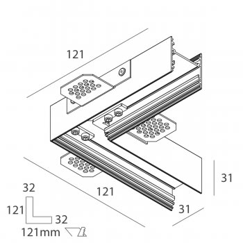 P-30 PCB: GIUNTO a L per cartongesso di spessore 12,5 mm kit di giunzione incluso. Profili di chiusura da ordinare a parte.