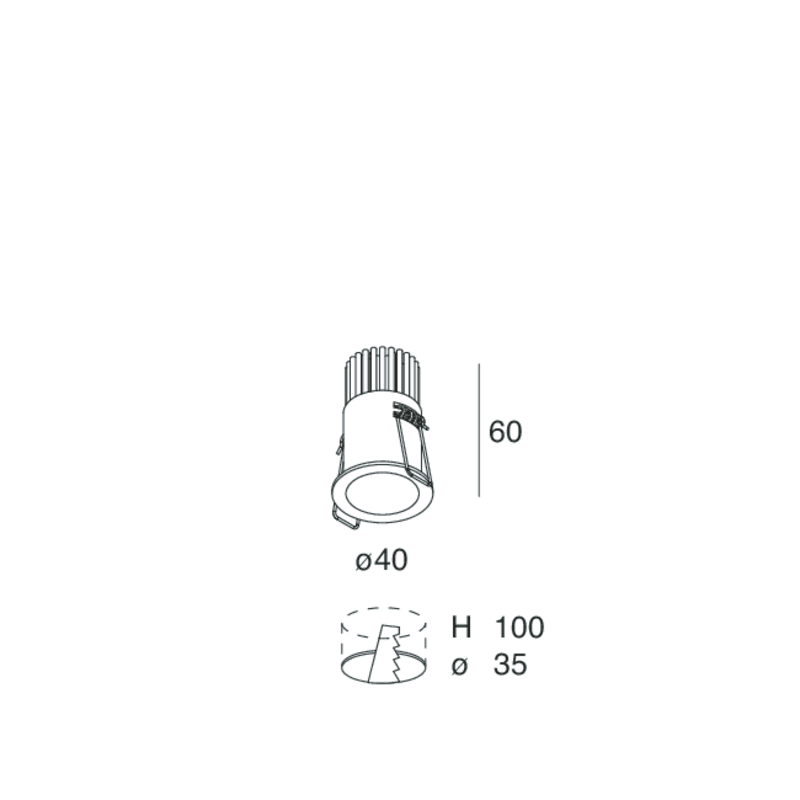 KONE 5W, 500mA, Idoneo per controsoffitto di spessore da 5 a 30 mm. Downlight LED per incasso in cartongesso. Corpo e dissipatore in lega di alluminio verniciata. Molle in acciaio armonico per fissaggio su controsoffitto. Alimentatore elettronico 500mA da ordinare a parte.