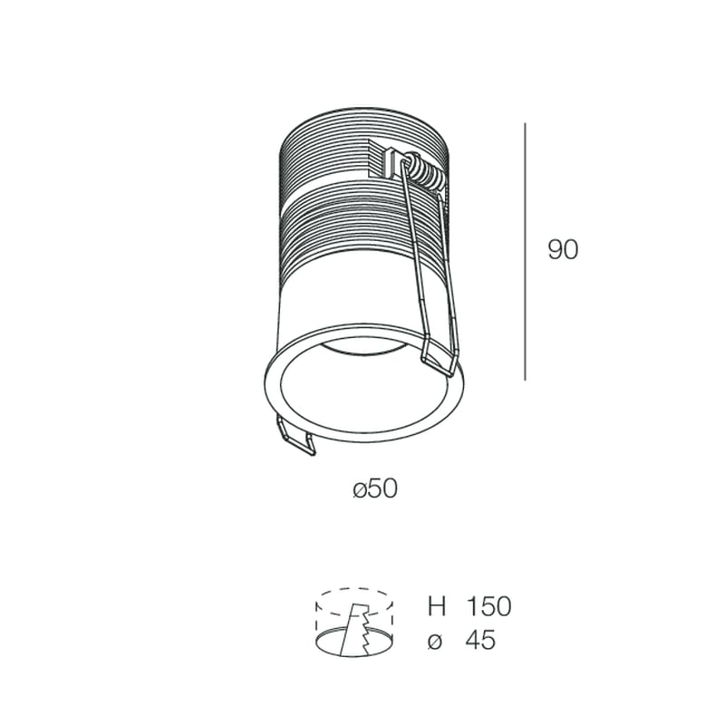 Downlight LED per incasso in cartongesso. Corpo e dissipatore in lega di alluminio verniciata. Molle in acciaio armonico per fissaggio su controsoffitto. Alimentatore elettronico da ordinare a parte.