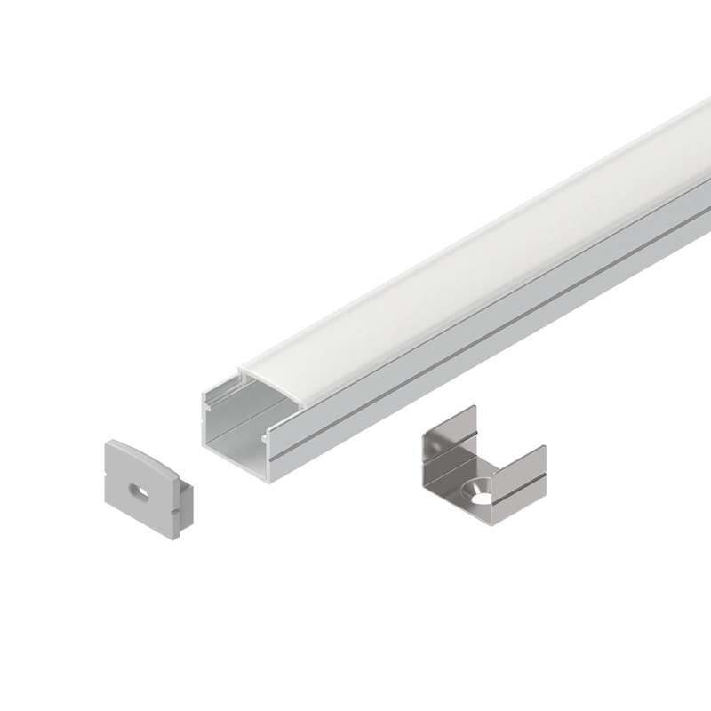 PROFILED 230 Profilo dissipante per strip LED in lega di alluminio anodizzata naturale, testate di chiusura in polimero termoplastico, schermo diffusore ad inserimento a scatto in policarbonato opale. Schermo diffusore, testate di chiusura e n?4 staffe di fissaggio inclusi. Non esporre a intemperie o luce solare diretta e non inseire in materiale isolante.