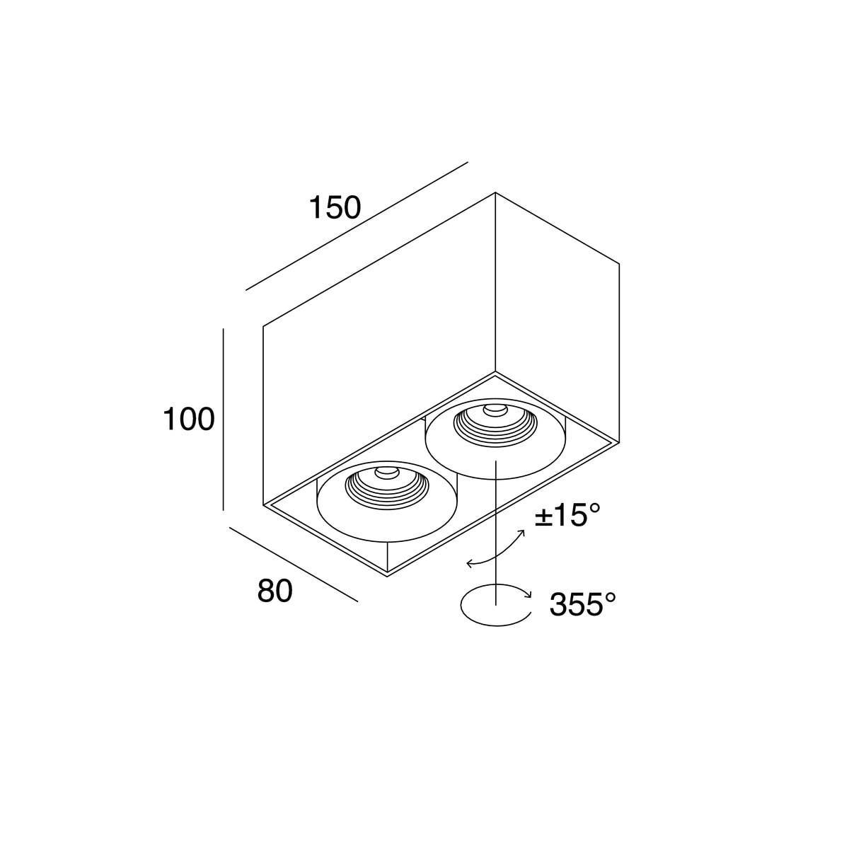 OWL DOPPIO: Apparecchio LED orientabile per installazione a plafone, in lega di alluminio verniciata bianca. Sorgente LED ad elevata resa cromatica CRI90, posizionata recessa per aumentarne il comfort visivo e limitare l?abbagliamento. Lenti ad alto rendimento in PMMA. Alimentazione elettronica 220-240V 50/60 Hz integrata.