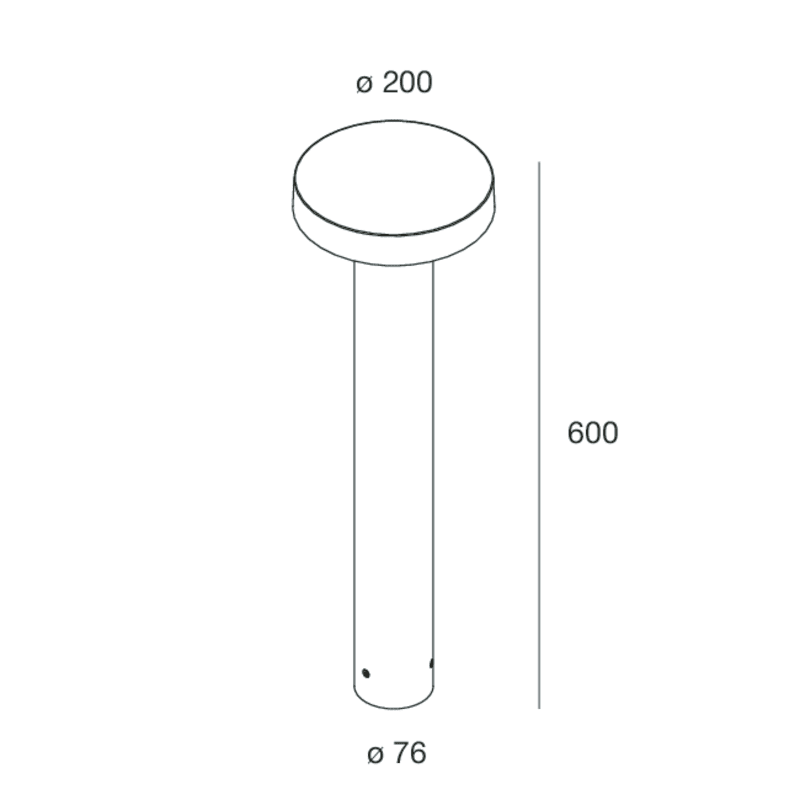 Bollard LED IP65, per istallazione su pavimentazione. Corpo in lega di alluminio. Sorgenti LED 3000K. Verniciatura a polvere grigio antracite ad alta resistenza agli agenti atmosferici, schermo diffusore in polimero tecnico. Alimentazione elettronica 220-240V 50/60Hz integrata.