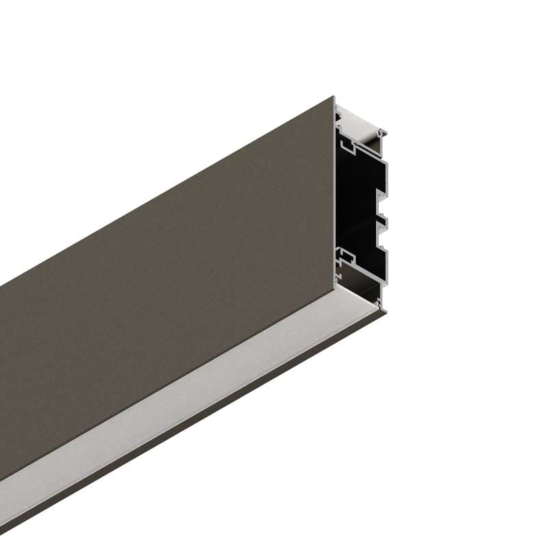 RECTA STRIP LED / Sistema lineare per strip LED a luce diretta/indiretta per installazione a parete. Profilo tagliabile in opera e testate in lega di alluminio verniciata, schermi diffusori in policarbonato opale. Schermi diffusori e kit di giunzione inclusi. Testate terminali, strip LED e alimentatore elettronico da ordinare a parte.