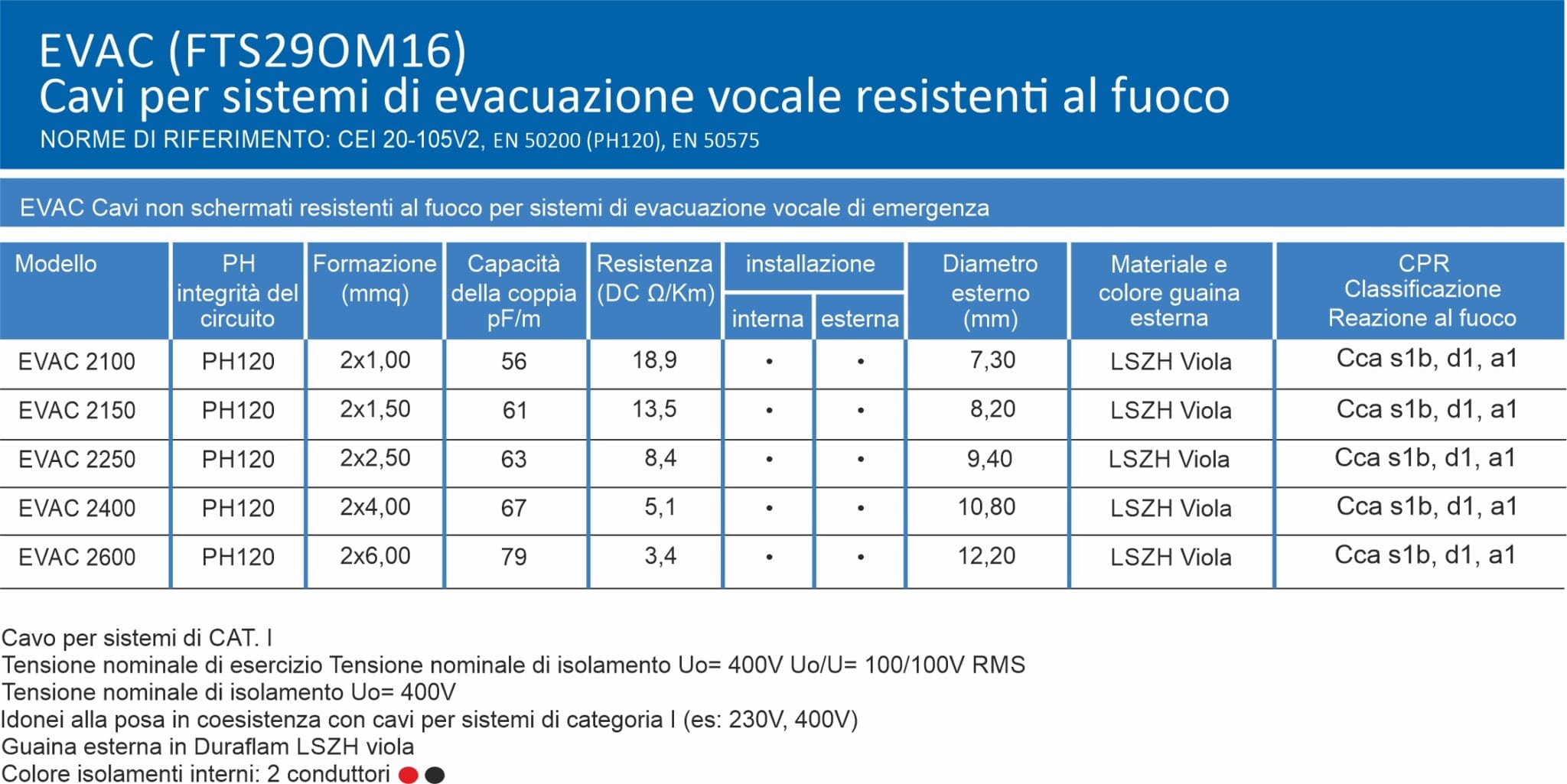 NUOVA BETACAVI SRL - BTVEVAC2250SF100 EVAC 2X2,50 PH120 LSZH MAT.100 - EVAC2250SF100