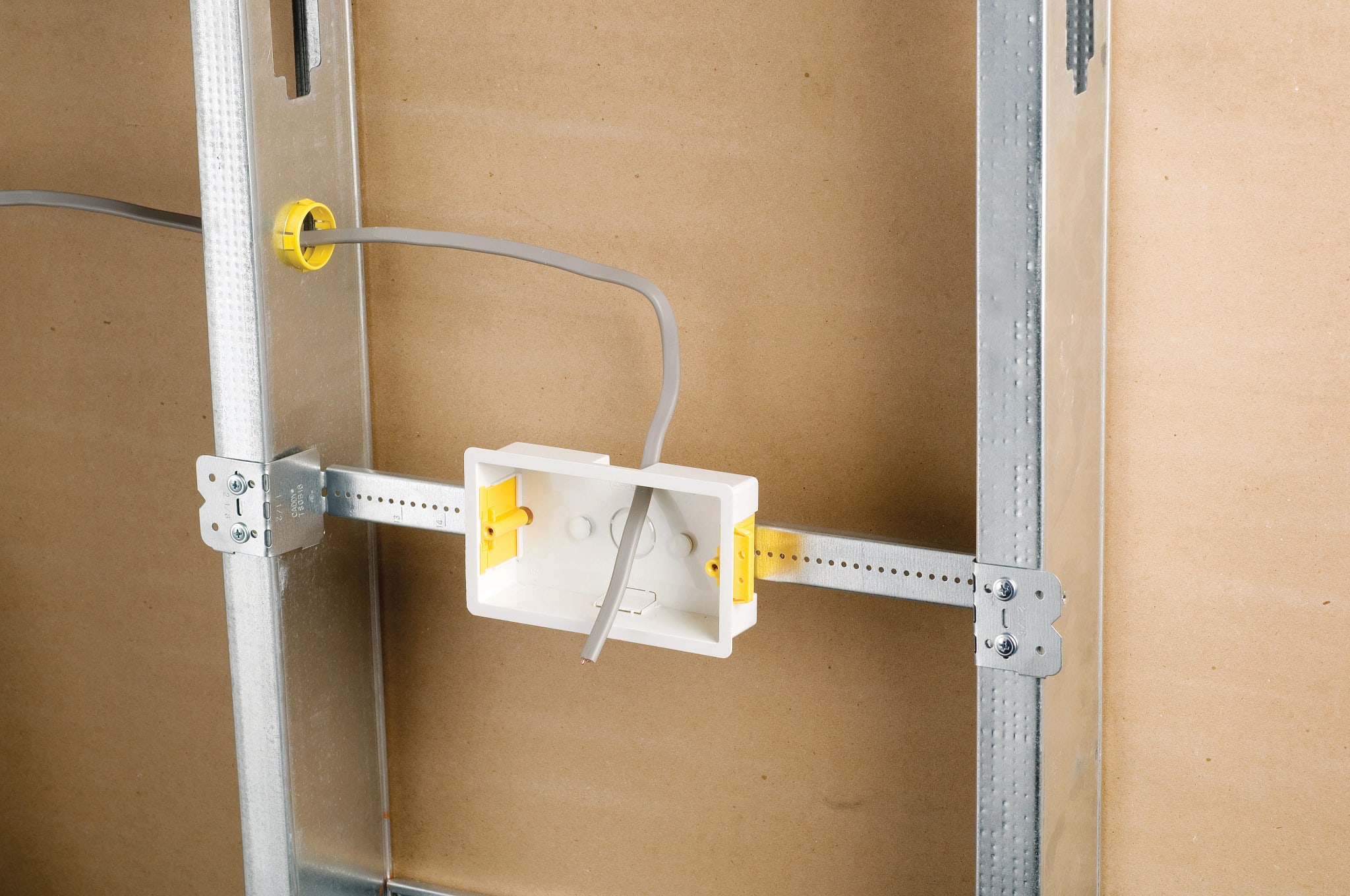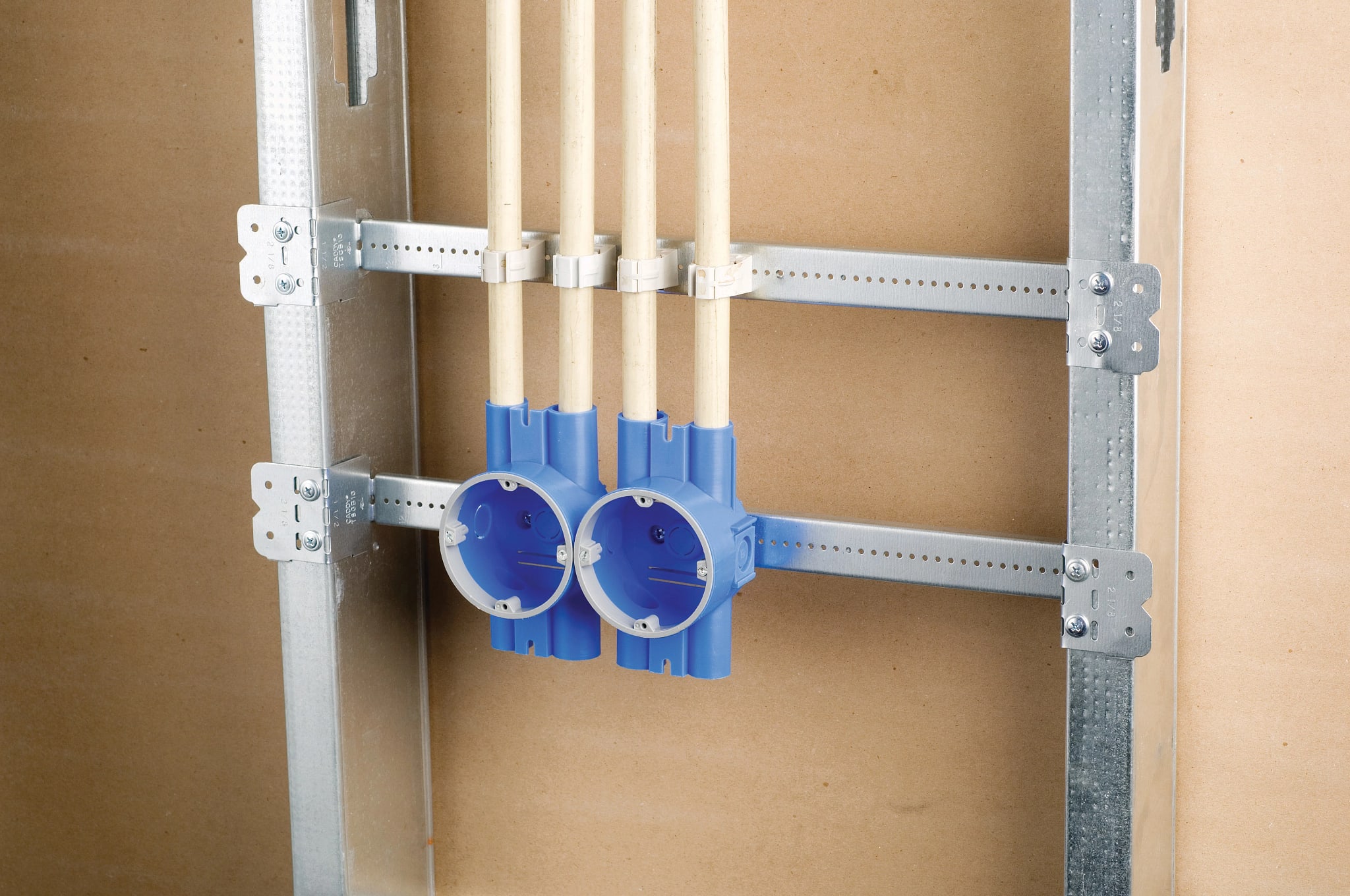 La staffa telescopica per avvitatore per scatola accelera il fissaggio preciso della scatola o del conduit tra montanti. Può fissare più scatole o condotti. Regolabile 15 3/4" -25" (400 mm - 635mm) per spaziatura dei montanti non standard.