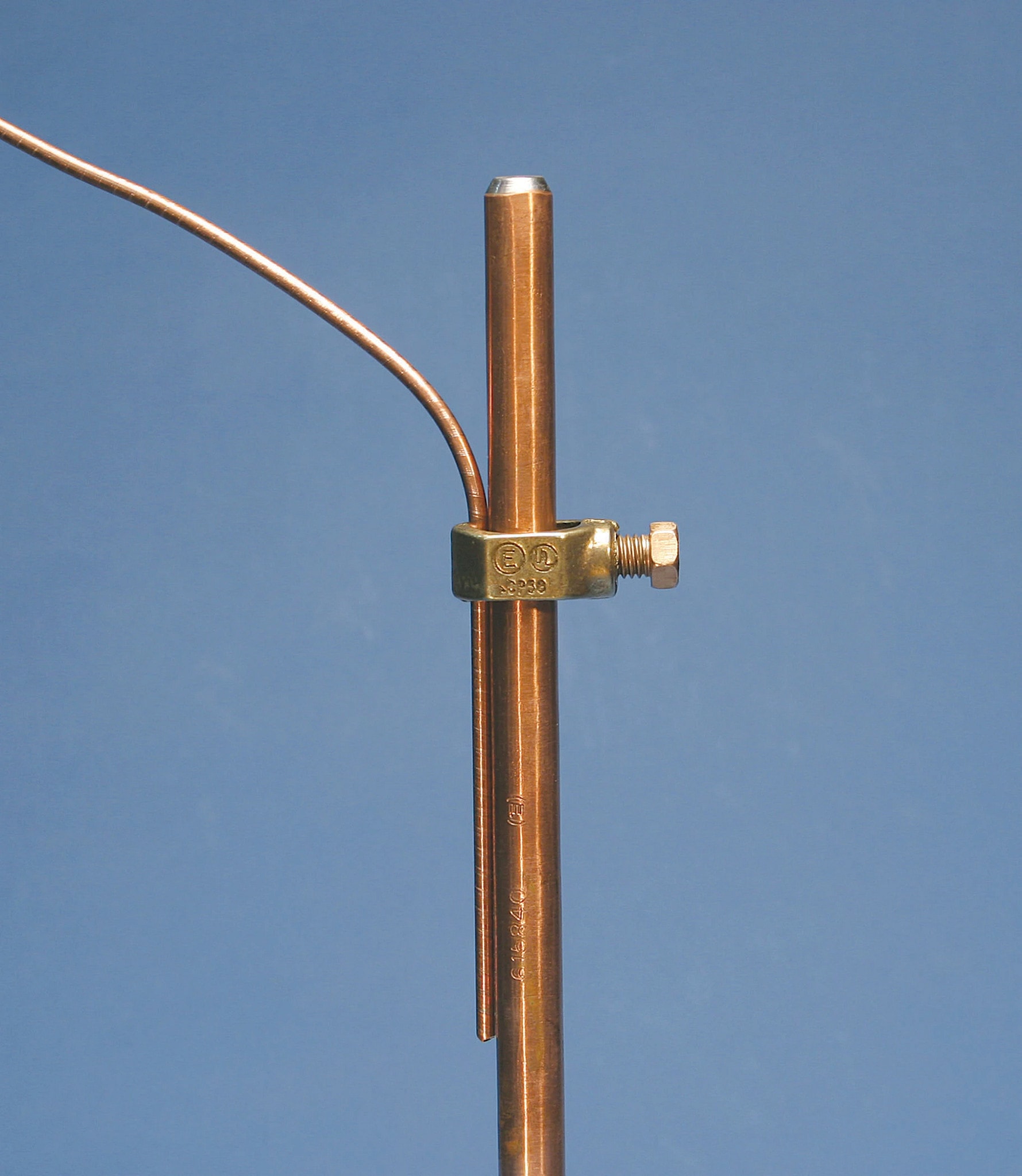 I picchetti in acc. ram. nVent ERICO combin. la resist. dell'acc. per facilitare l'install. con il rame legato molec. per una resist. alla corr. di lunga durata. Asta di terra appuntita, 3/4" x 5' con spess. di placc. 10 mil.