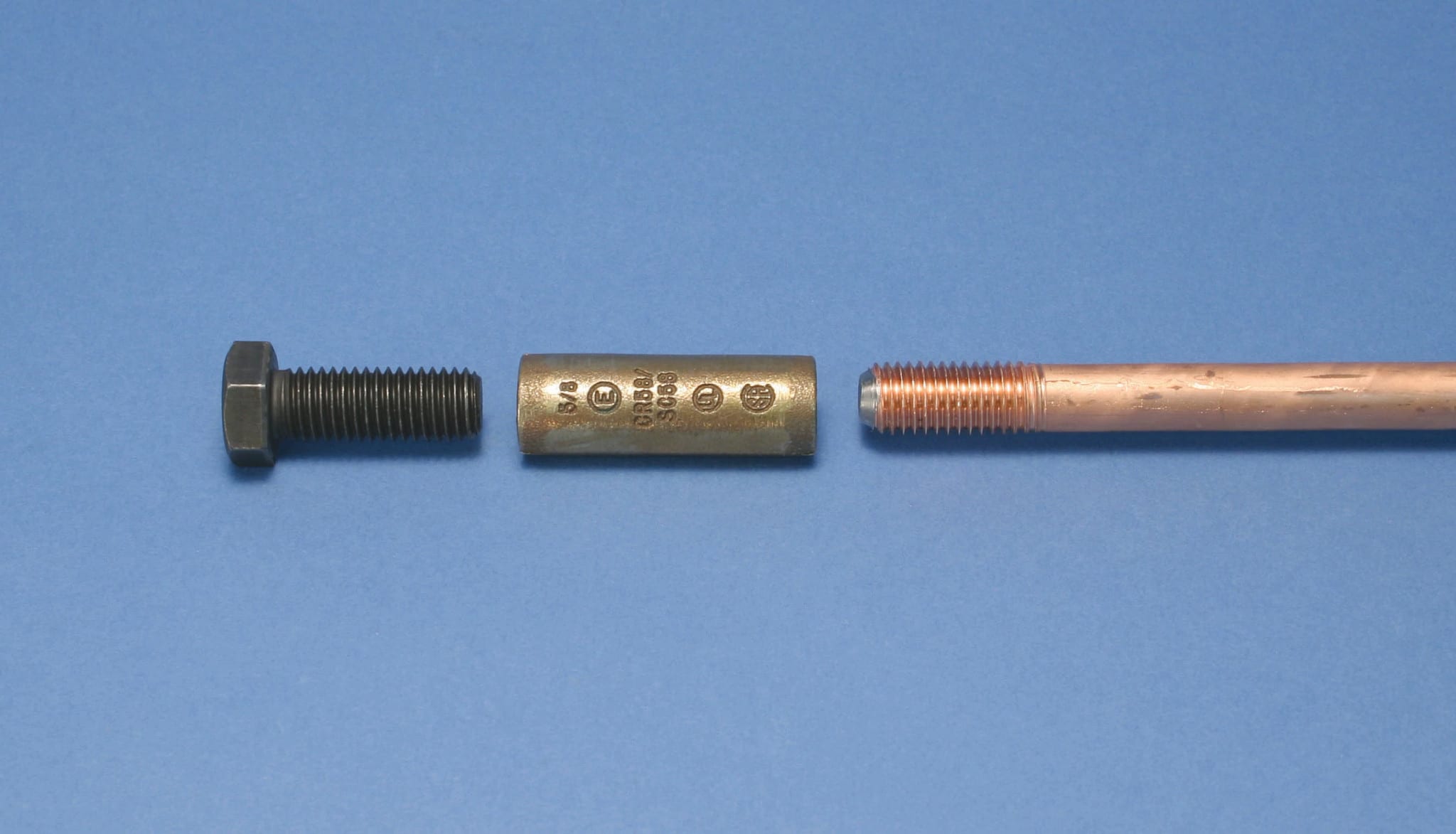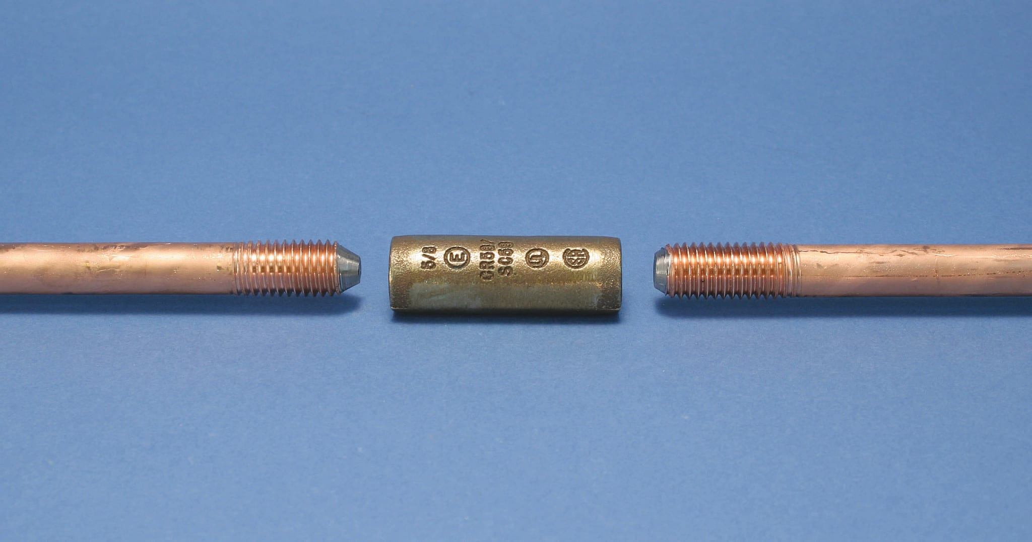 I picchetti in acc.ram. nVent ERICO combin. la resist. dell'acc. per facilitare l'install. e il rame legato molec. per un processo di avvit. e una resist. alla corr. durevole. Asta di terra appuntita, 3/4" x 10' con spess.placc. 10 mil.