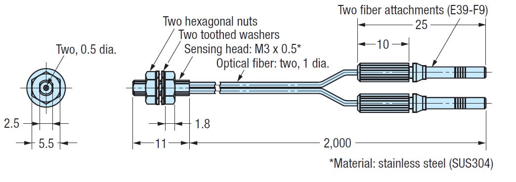 OMRON - OMRE32DC200E2M-1828 FIBRA OTTICA E32-DC200E, M3, R10, 2M - E32DC200E2M-1828