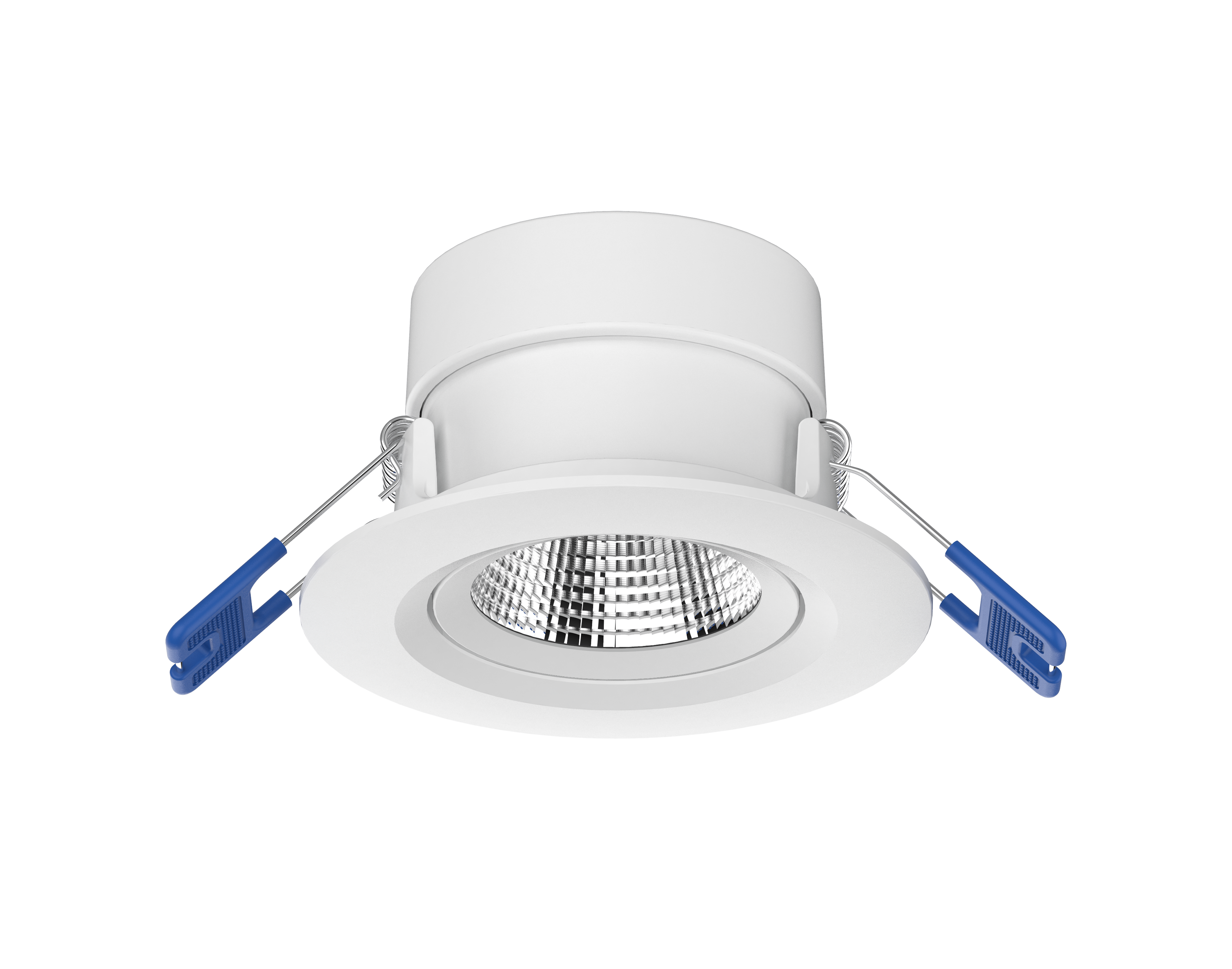 Faretto LED a incasso con angolo di inclinazione di 25?. Fascio luminoso ottimale garantito dal nuovo design del riflettore microsfaccettato. Flicker Free per illuminazione d'accento ottimale. Diametro del foro di montaggio universale di 68 mm. IP44 vanoapparecchio.