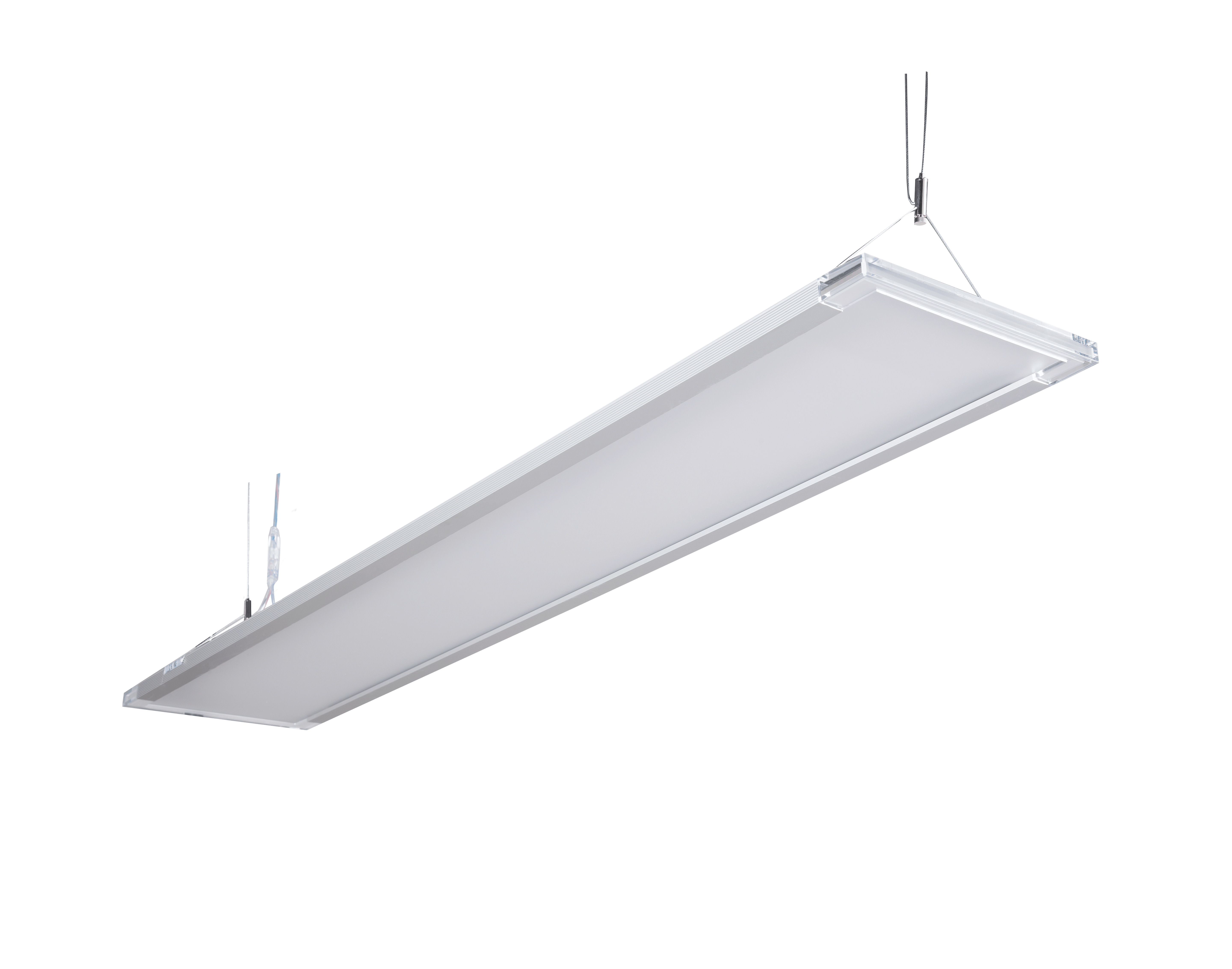 Apparecchio dal design minimale con ottica biemissione che permette di distribuire la luce sia in alto sia in basso abbinando l?efficienza al comfort. Illuminazione architettonica di uffici e sale riunioni. Inclusi: kit di sospensione (2,5 m) e alloggiamento separato del driver in colore alluminio.