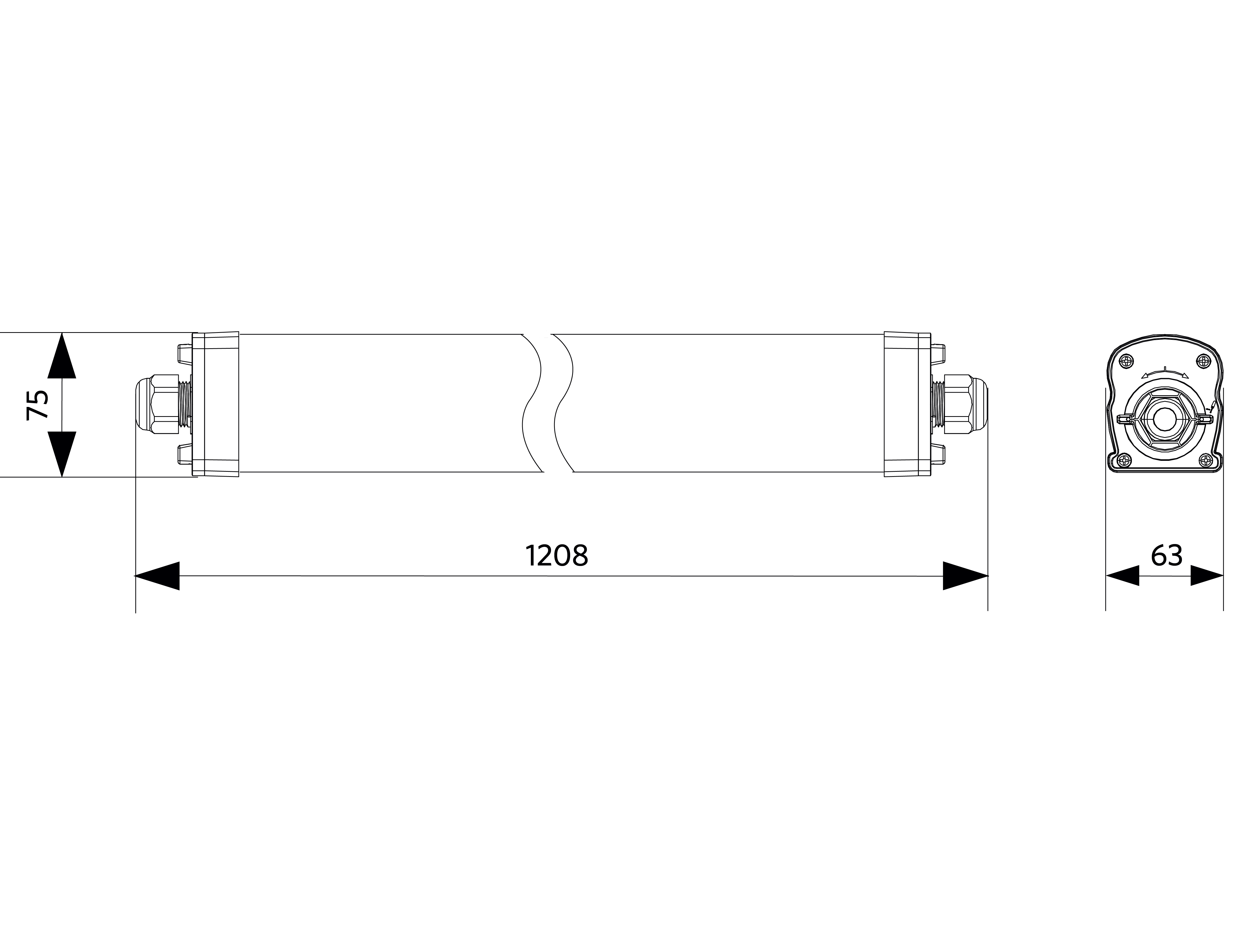 Gamma di apparecchi di illuminazione stagni a elevata potenza. Installazione rapida e veloce con cablaggio passante. Fornito di clip di montaggio per il montaggio a sospensione in acciaio inossidabile.
