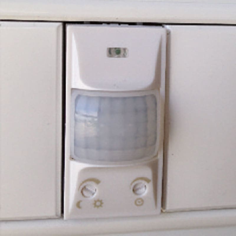 Rivelatore di movimento da incasso per serie civili, che rileva le emissioni invisibili infrarosse provenienti da persone o da altre fonti di calore senza emettere alcun tipo di radiazione. - Rivelatore di presenza da incasso, 1 modulo per serie civile - Adattabile alle principali serie civili con un sistema di adattatori intercambiabili inclusi nella confezione - In dotazione tre frontalini colore Bianco, Antracite e Alluminio intercambiabili - Regolazione della luminosità - Regolazione del ritardo allo spegnimento - Il sensore reca un LED di colore verde che si accende a rilevamento avvenuto - TecnologiaZero Crossing che garantisce una lunga durata dei contatti del relè e maggiori prestazioni elettriche CARATTERISTICHE TECNICHE - Tensione nominale: 230 V - Frequenza nominale: 50 Hz - Portata dei contatti: 5 A / 230 V - Carichi massimi: - Incandescenza: 800 W - Fluorescenza: 200 VA - Alogena basso voltaggio: 500 VA - Alogena 230 V AC: 800 W - Lampade basso consumo: 200 VA - LED: 200 VA - Autoconsumo: 7,3 VA (1,1 W) - Tipo di contatto: In chiusura con potenziale - Temperatura di funzionamento: -10 °C a +40 °C - Range luminosità: 10-2000 lux - Range temporizzazione: 10 s - 3 min. circa - Angolo di rilevamento: 120° - Campo di rilevamento: Fino a 7 m (a temperatura di 22 °C) - Placche compatibili (*): BTICINO (Living, Livinglight, Livinglight tech, Livinglight air, Axolute, Axolute Air, Matix) VIMAR (Plana, Eikon, Arké) GEWISS (Chorus) AVE (Serie44) - Grado di protezione: IP 20 - Installazione: Incasso, 1 modulo serie civile * I marchi indicati sono di proprietà dei legittimi proprietari.
