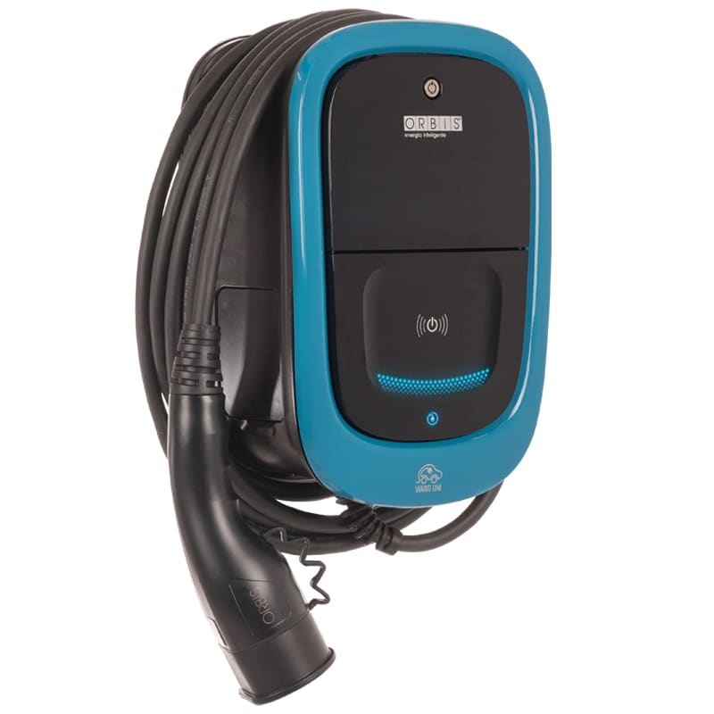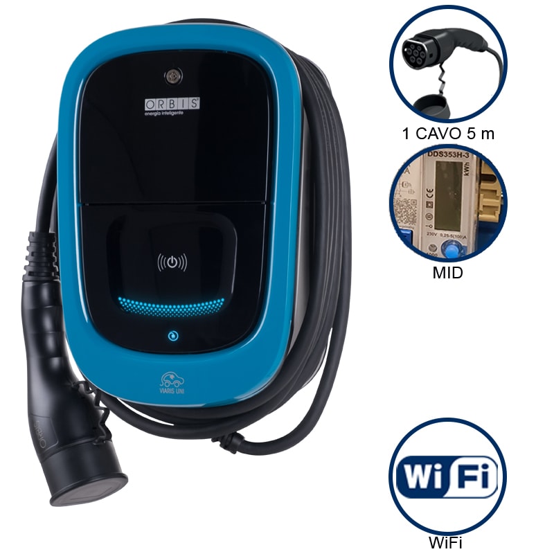 Le stazioni di carica intelligenti VIARIS UNI+ consentono di collegare il veicolo elettrico (VE) alla rete di alimentazione in corrente alternata e di poterlo ricaricare in MODO 3 e, dotate di un involucro robusto studiato per installazioni interne e il fissaggio a parete, sono idonee per l?uso in ambito privato come garage, uffici, ecc. VIARIS UNI+ permette di tenere tutto sotto controllo con gli indicatori luminosi ed una serie di accessori completa la funzionalita dell?apparecchiatura. La stazione diricarica VIARIS UNI+ e dotata di serie di un dispositivo integrato che assicura l?interruzione dell?alimentazione in caso di correnti di guasto in DC superiori o uguali a 6 mA e sul frontale permettono l?alloggiamento delle protezioni magnetotermiche / differenziali e dei contatori d?energia in uno spazio accessibile e protetto da uno sportellino con chiave. INCLUSI DI SERIE Modulatore di carica in base al consumo istantaneo della abitazione. La richiesta di potenza e regolata per ottenere la ricarica nel piu breve tempo possibile, senza superare la potenza contrattuale Comunicazione WIFI App per la gestione della ricarica e il controllo dei consumi energetici. L?applicazione consente anche di aggiornare da remoto la stazione Sensore tattile per attivazione / disattivazione carica Lettore RFID per attivazione / disattivazione carica Dispositivo integrato che assicura l?interruzione dell?alimentazione in caso di corrente di guasto in corrente continua superiore a 6 mA secondo CEI 64-8 V5 2019 02 Ingresso per il controllo esterno (controllo domotico) Uscita rele per il comando della bobina di sgancio a lancio di corrente Programmazione oraria per l?utilizzo nelle diverse fasce orarie Centralino frontale da 8 moduli DIN per l?alloggiamento delle protezioni e del contatore di energia (opzionali), con chiusura a chiave EQUIPAGGIAMENTI EXTRA Contatore di energia omologato MID Protezioni: Differenziale tipo A sens. 30 mA + Magnetotermico curva C Comunicazione ETHERNET Comunicazione 4G** Configurazione SPL (gestione multidispositivo con correnti superiori a 100A)** Colonna o Palo per fissaggio a terra** INTEROPERABILITA? STAZIONI Protocollo OCPP 1.6 J per la comunica-zione tra le stazioni di ricarica e sistemi di gestioni esterni (piattaforme per la ge-stione dei servizi di ricarica). CARATTERISTICHE TECNICHE Potenza Stazione: 7,4 kW 32A Alimentazione: 230 VAC (monofase) Frequenza: 50/60 Hz Modo di carica: Modo 3 secondo EN 61851-1 Uscita con cavo+connettore: Cavo flessibile lunghezza 5 m Connettore Tipo 2 secondo EN 62196-2 Comunicazione WiFi: Presente (802.11 b/g/n) Comunicazione Ethernet: Assente Sensore tattile ON/OFF caricatore: Presente Lettore RFID ON/OFF caricatore: Presente Contatore MID: Presenti Protezioni: Assenti Segnalazione LED stato stazione: Presente multicolore Segnalazione LED stato carica: Presente multicolore Temperatura di funzionamento: Da -30 ?C a +50 ?C Materiale custodia: PC ad alta resistenza Grado di protezione custodia: IP 54 Grado di protezione meccanica: IK8 secondo EN 62262 Installazione: Montaggio a parete, montaggio a terra tramite Colonna o Palo Peso: 4 kg