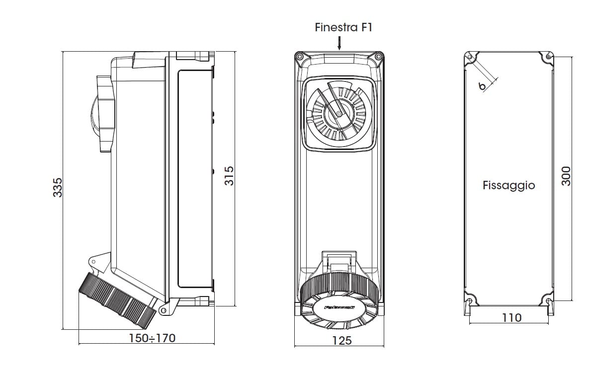 ALUPRES PRESA FISSA INTERBLOCCATA IN ALLUMINIO CON BASE PORTAFUSIBILI 3P+T 32A F0 100-130V 4H 50-60HZ FUSIBILI DIII IP67 >>IK10