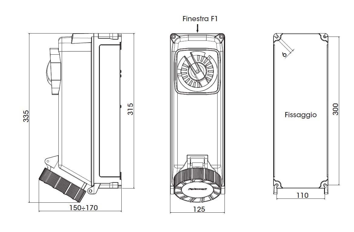 ALUPRES presa fissa interbloccata in alluminio con base portafusibili 2P+T 32A F0 >50÷250vdc 3h fusibili diii IP67