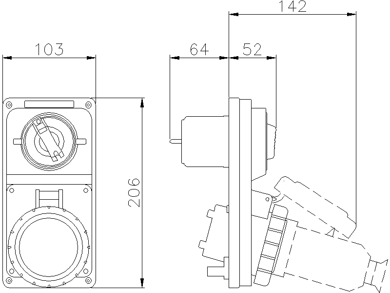 Prese con interruttore di blocco da 16A e 32A per installazioni da quadro - IP55 Dati tecnici Classe di isolamento II Corrente nominale 16 A Esecuzione QUADRO Frequenza 50-60Hz Grado di protezione IP55 Materiale di fabbricazione TERMOPLASTICO Poli 3P + N + T Rif. orario 6 h Tensione nominale 200/346 240/415V~ Tipo di prodotto PRESA Peso netto 0,763 KG