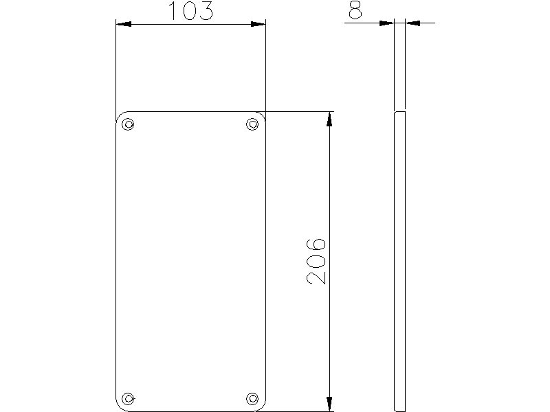 Flangia di chiusura, in dotazione 4 viti in acciaio inox per il fissaggio al quadro. Permette la chiusura di sedi non utilizzate di tutti i quadri flangiati della serie PRIMA. Dimensioni: 206x103mm