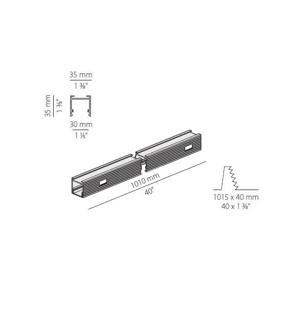 Profilo componibile per installazione incassata a soffitto o parete in ambienti interni, con emissione diretta. Struttura a scomparsa per l'incasso in cartongesso, in alluminio estruso con verniciatura a polvere in colore bianco RAL 9003. Schermo diffusore in policarbonato estruso con finitura opalina. Fornito completo di schermo monouso per rasatura, stuccatura e verniciatura della superficie di installazione. Moduli luminosi e alimentatore da ordinare separatamente. Accessori di fissaggio, giunzione e chiusura da ordinare separatamente. Dimensione del foro di incasso: 1015x40mm (40x1,6"). Sorgente luminosa LED. Distribuzione luminosa fascio diffuso. Alimentazione 24V DC. Driver remoto non incluso. Peso 0,8300Kg. Grado di protezione IP40.