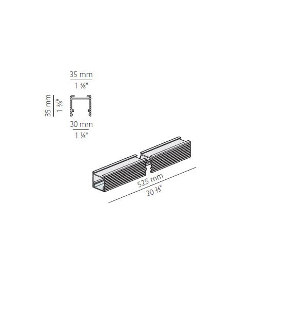 Profilo componibile per installazione a sospensione o a soffitto in ambienti interni, con emissione diretta. Struttura in alluminio estruso con verniciatura a polvere in colore bianco RAL 9003. Schermo diffusore in policarbonato estruso con finitura opalina. Moduli luminosi e alimentatore da ordinare separatamente.Potenza assorbita dal sistema max 46W/m Sorgente luminosa LED. Distribuzione luminosa fascio anti-abbagliamento. Apertura fascio 51° / 82°. Alimentazione 24V DC. Driver remoto non incluso. UGR< 19. Peso 0,6800Kg. Grado di protezione IP20. 3000K 8,5W 24V. 525 mm