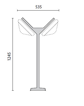 Palo in alluminio per alloggiare uno o due apparecchi, costituito da: Palo in alluminio estruso verniciato per alloggiare uno o due apparecchi su mensola. Mensole in tecnopolimero autoestinguente. Scatola di derivazione in tecnopolimero autoestinguente con morsetto a 4 poli 16 mm2. Altezza del palo: 1245 mm