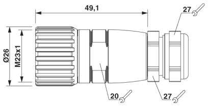 Connettore femmina M23, 12 poli, diritto, liberamente configurabile, con connessione a saldare, per diametro esterno cavo 8 mm ... 12 mm