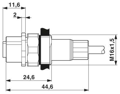 Connettore femmina da incasso sistema bus, Ethernet, 4 poli, M12, schermato, codifica D, montaggio anteriore/a vite, con filettatura M16, posizionabile, con cavo bus da 0,5 m, 2 x 2 x 0,14 mm²