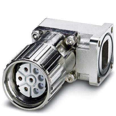 Connettore per apparecchi anteriore con dado zigrinato, angolato, fisso, Bloccaggio a vite, M23, numero poli: 4+3+PE, tipo contatti: femmina, Attacco a crimpare, O-ring assiale, 4x Ø 3,2, schermata: sì, misura flangia: 26 mm x 26 mm