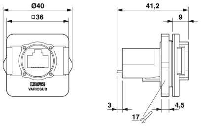 Telaio da incasso RJ45, IP67, per dima di foratura tonda, con guarnizione, con filettatura e dado, con inserto portacontatti femmina RJ45, CAT5e, femmina su femmina, con coperchio di protezione esecuzione piatta