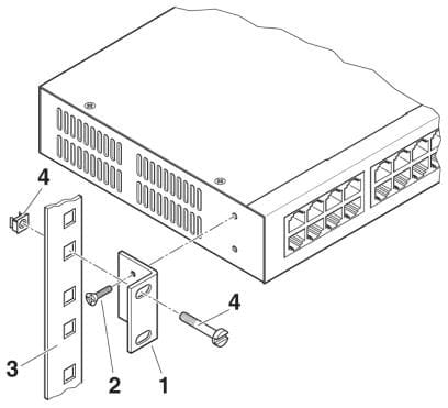 Switch Ethernet, 24 porte lato frontale in formato RJ45, riconoscimento automatico della velocità di trasmissione dati da 10 o 100 Mbit/s, collegamento di segmenti di rete con velocità di trasmissione diverse, funzione autocrossing, installazione in unità da innesto da 19" (482 mm).