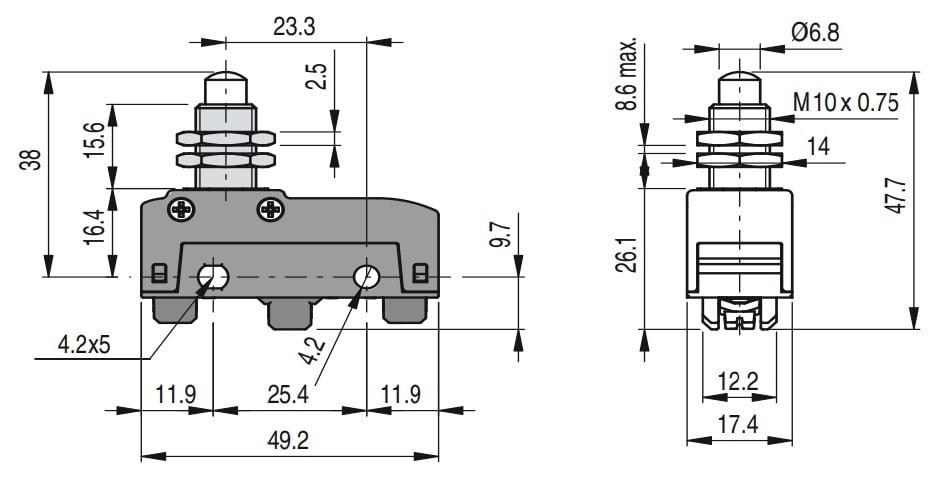 PIZZATO ELETTRICA - PZZMK V12D09 MICROINTERRUTTORE A PULSANTE FILETTATO - MK V12D09
