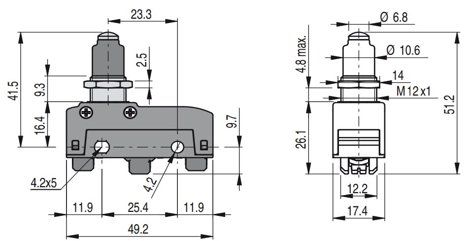Lunghezza del sensore - 49.2 mm