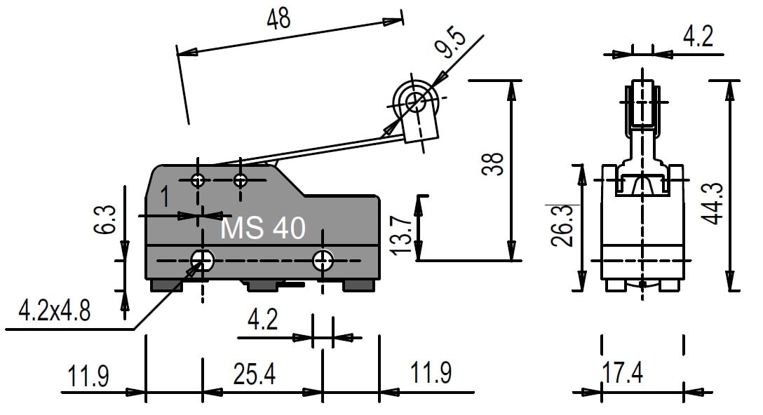 PIZZATO ELETTRICA - PZZMS 40 MICROINTERRUTTORE A LEVA CON ROTELLA - MS 40