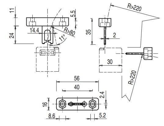 Attuatore per serie FR-FX-FK-FW. Azionatore regolabile in una direzione in acciaio inox. Azionatore con possibilità di regolazione in una direzione per sportelli di piccole dimensioni.