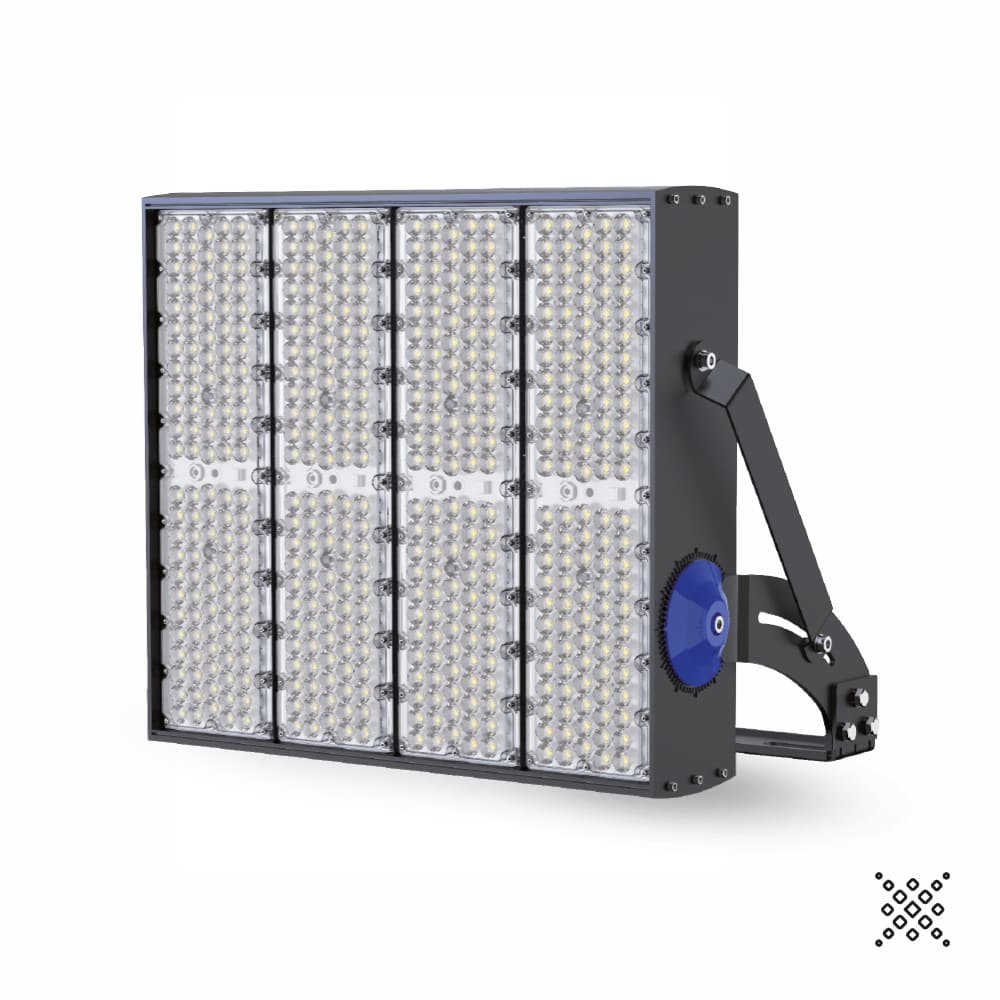 PROIETTORE DA ESTERNO AD ALTE PRESTAZIONI CON SISTEMA OTTICO MULTICHIP PER MIGLIORARE LA DISTRIBUZIONE DELLA LUCE E GARANTIRE UNA ELEVATA EFFICENZA E AFFIDABILITÀ, CORPO CON RESISTENZA AERODINAMICA MIGLIORATA, PASSIVATO E VERNICIATO CON VERNICI EPOSSIDICHE AD ALTA RESISTENZA, BULLONERIA IN ACCIAO INOX E SISTEMA GONIOMETRICO PER UNA PRECISA REGOLAZIONE DEL FASCIO DI LUCE