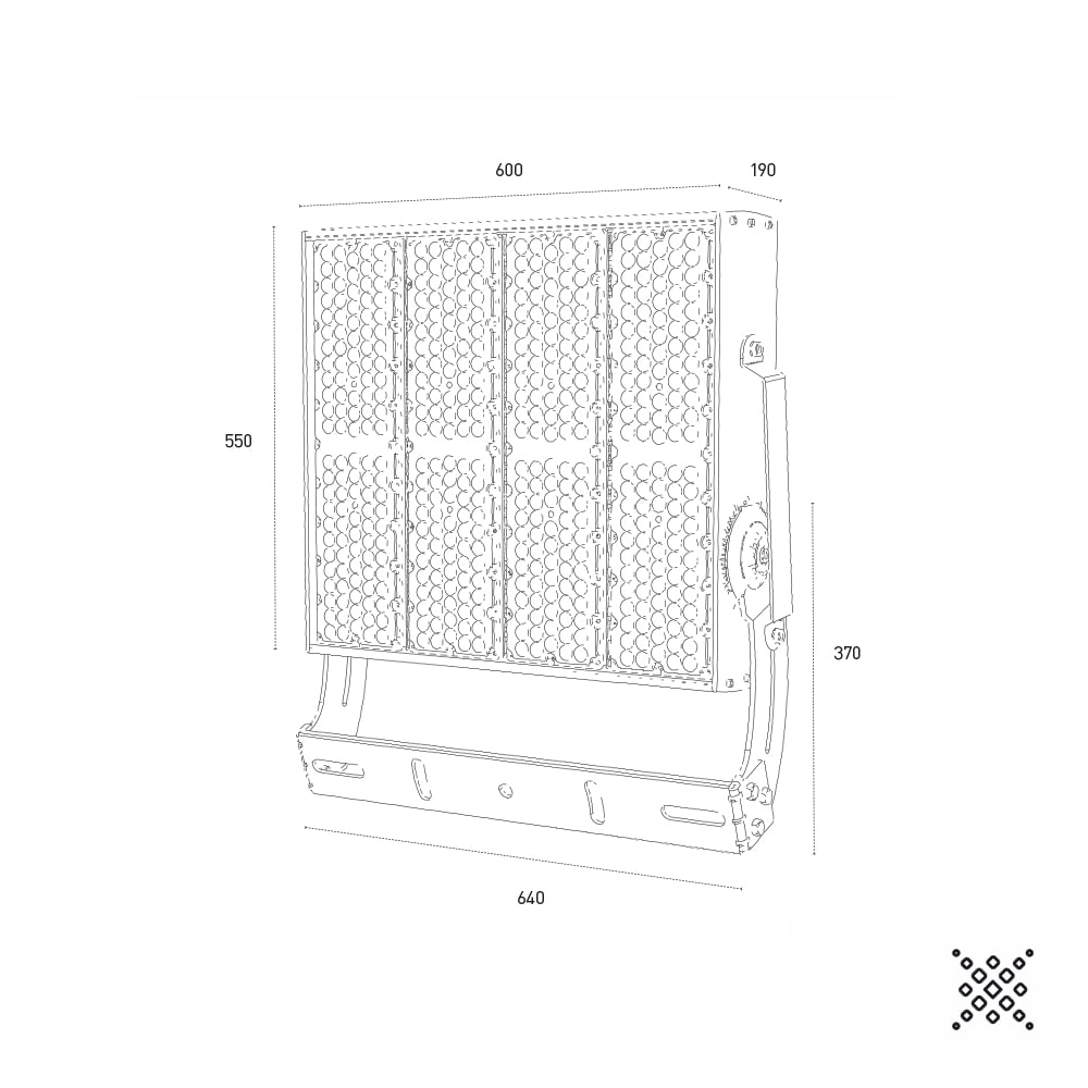 PROIETTORE DA ESTERNO AD ALTE PRESTAZIONI CON SISTEMA OTTICO MULTICHIP PER MIGLIORARE LA DISTRIBUZIONE DELLA LUCE E GARANTIRE UNA ELEVATA EFFICENZA E AFFIDABILITÀ, CORPO CON RESISTENZA AERODINAMICA MIGLIORATA, PASSIVATO E VERNICIATO CON VERNICI EPOSSIDICHE AD ALTA RESISTENZA, BULLONERIA IN ACCIAO INOX E SISTEMA GONIOMETRICO PER UNA PRECISA REGOLAZIONE DEL FASCIO DI LUCE
