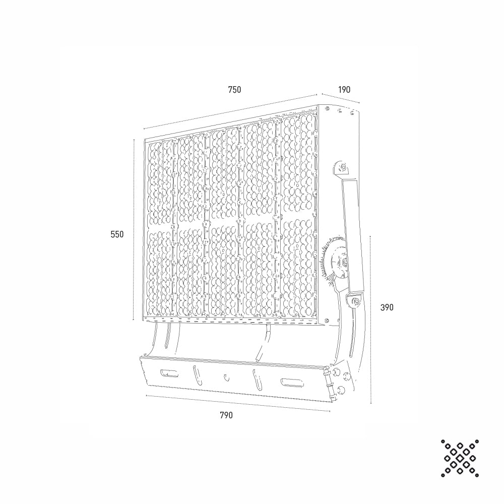 PROIETTORE DA ESTERNO AD ALTE PRESTAZIONI CON SISTEMA OTTICO MULTICHIP PER MIGLIORARE LA DISTRIBUZIONE DELLA LUCE E GARANTIRE UNA ELEVATA EFFICENZA E AFFIDABILITÀ, CORPO CON RESISTENZA AERODINAMICA MIGLIORATA, PASSIVATO E VERNICIATO CON VERNICI EPOSSIDICHE AD ALTA RESISTENZA, BULLONERIA IN ACCIAO INOX E SISTEMA GONIOMETRICO PER UNA PRECISA REGOLAZIONE DEL FASCIO DI LUCE