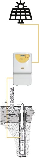 Sistema fotovoltaico ad isola (stand-alone) per estrazione acqua. Il sistema è composto da: • Modulo fotovoltaico opportunamente dimensionato (in base alla potenza dell’elettropompa) • Elettropompa che può essere di diverse portate in base alle necessità• Inverter PWS e tutto il necessario per assemblare il sistema in modo rapido e semplice, garantendo autonomia di funzionamento in tutte le situazioni.