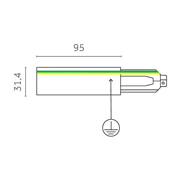 Accessorio per binario 3 Accensioni. Testata destra . Conduttore di terra a destra. Finitura: Bianco .