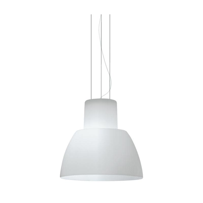Diffusore In metacrilato. Installazione Ancoraggio a soffitto mediante l'apposito modulo di metallo e 3 cavi in acciaio da mm. 5000. Glow wire (°C) => 850° - in conformità alla norma IEC EN 60598-1:2008 Annex ZC (13.3).