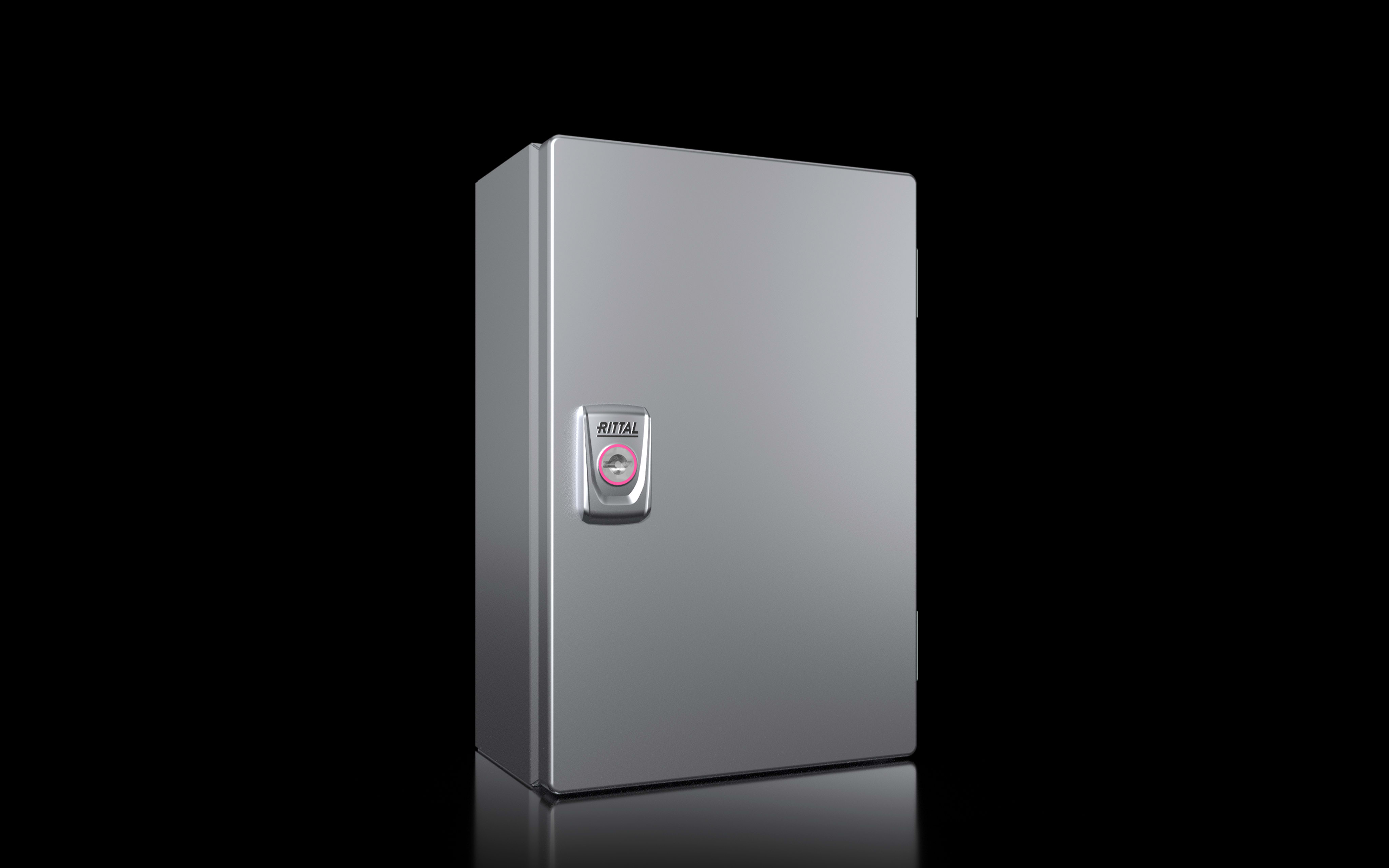 KX contenitore E-Box, LxAxP: 200x300x120 mm, acciaio inox 1.4301 (304), con piastra di montaggio, monoporta, con chiusura a filo