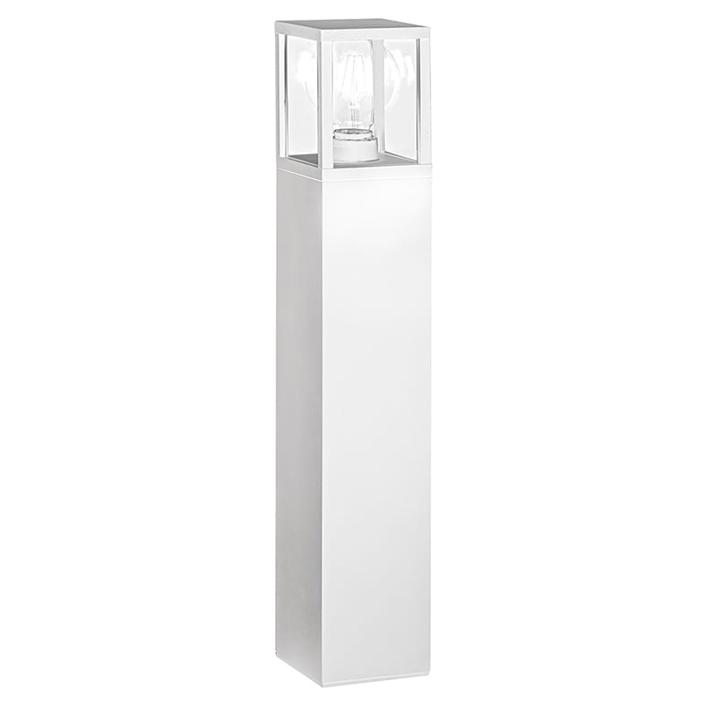 Apparecchio disponibile nella versione a parete e a paletto per esterno (IP54) con struttura in pressofusione di alluminio verniciato a polveri resistente a raggi UV e corrosione, e diffusore in vetro trasparente. Attacco E27 A60 che consente di personalizzare ulteriormente il prodotto montando una lampadina a vista a LED a scelta (max 15W). Disponibile in due finiture (bianco e antracite).